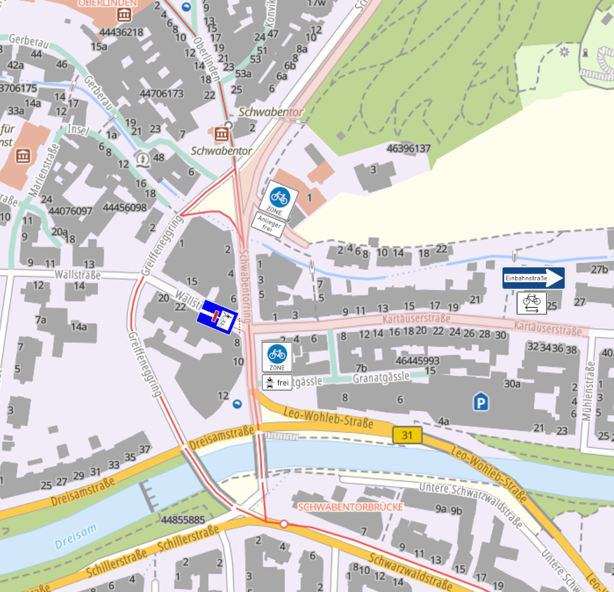 Wir haben die Stadtverwaltung bereits Ende 2022 darauf hingewiesen, dass es notwendig ist den Kfz-Schleichverkehr in der Wallstraße / Kartäuserstraße zu unterbinden um eine sichere Abwicklung des Verkehrs im Schwabentorring zu ermöglichen. Leider wurde dieser Hinweis nicht berücksichtigt. Wir schlagen vor eine Fahrradzone (Kfz / Anlieger frei) am Schwabentorring sowie eine Kfz Einbahnstraße (Radverkehr frei) in der Kartäuserstraße einzurichten. Der Kfz-Verkehr zwischen Wallstraße und Kartäuserstraße wird durch modale Filter unterbunden. Das bedeutet, dass die Einfahrt in die Kartäuserstraße nur noch über den Schwabentorring von Süden kommend möglich sein wird.