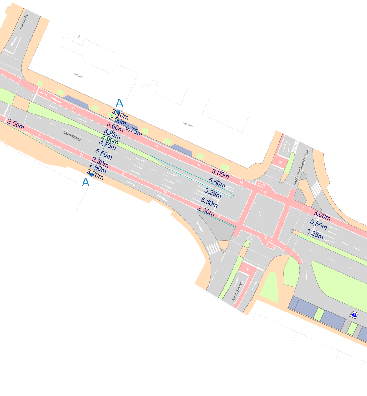 Aufgrund der Bedeutung des Schlossbergrings für den Radverkehr ist eine möglichst kreuzungsfreie, baulich getrennte Fuß- und Radverkehrsinfrastruktur eine Bedingung für dieses Projekt!