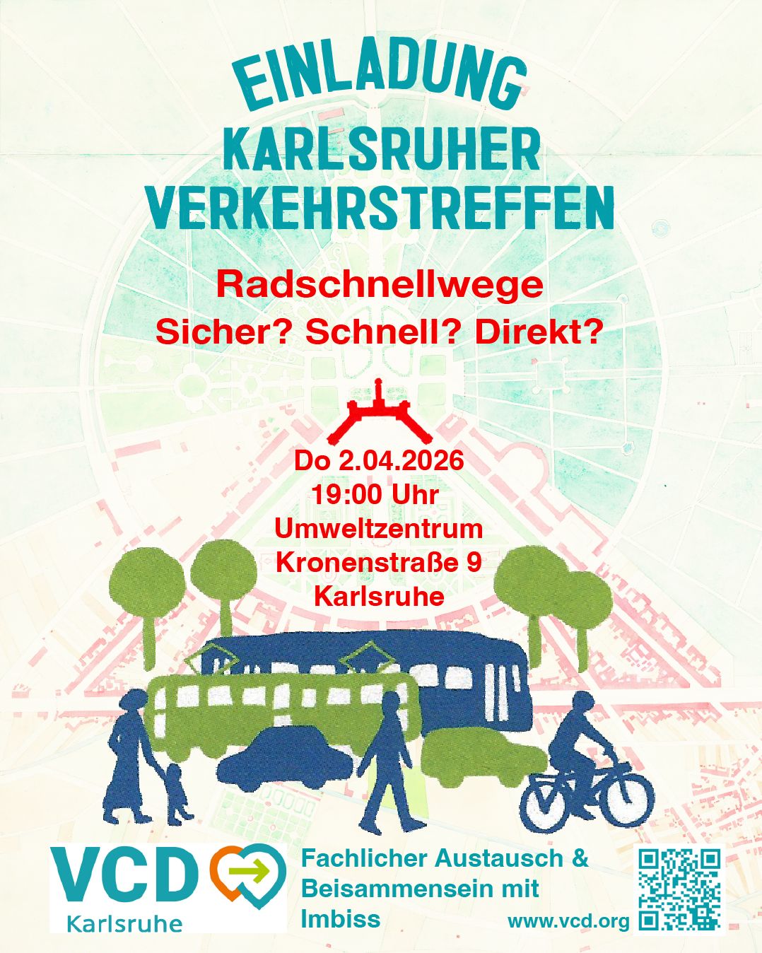 Wir veranstalten ein Treffen zum Thema Radschnellwege am Donnerstag 2.4.2026 um 19:00 Uhr im Umweltzentrum, Kronenstr. 9 Sind diese: Sicher? Schnell? Direkt?