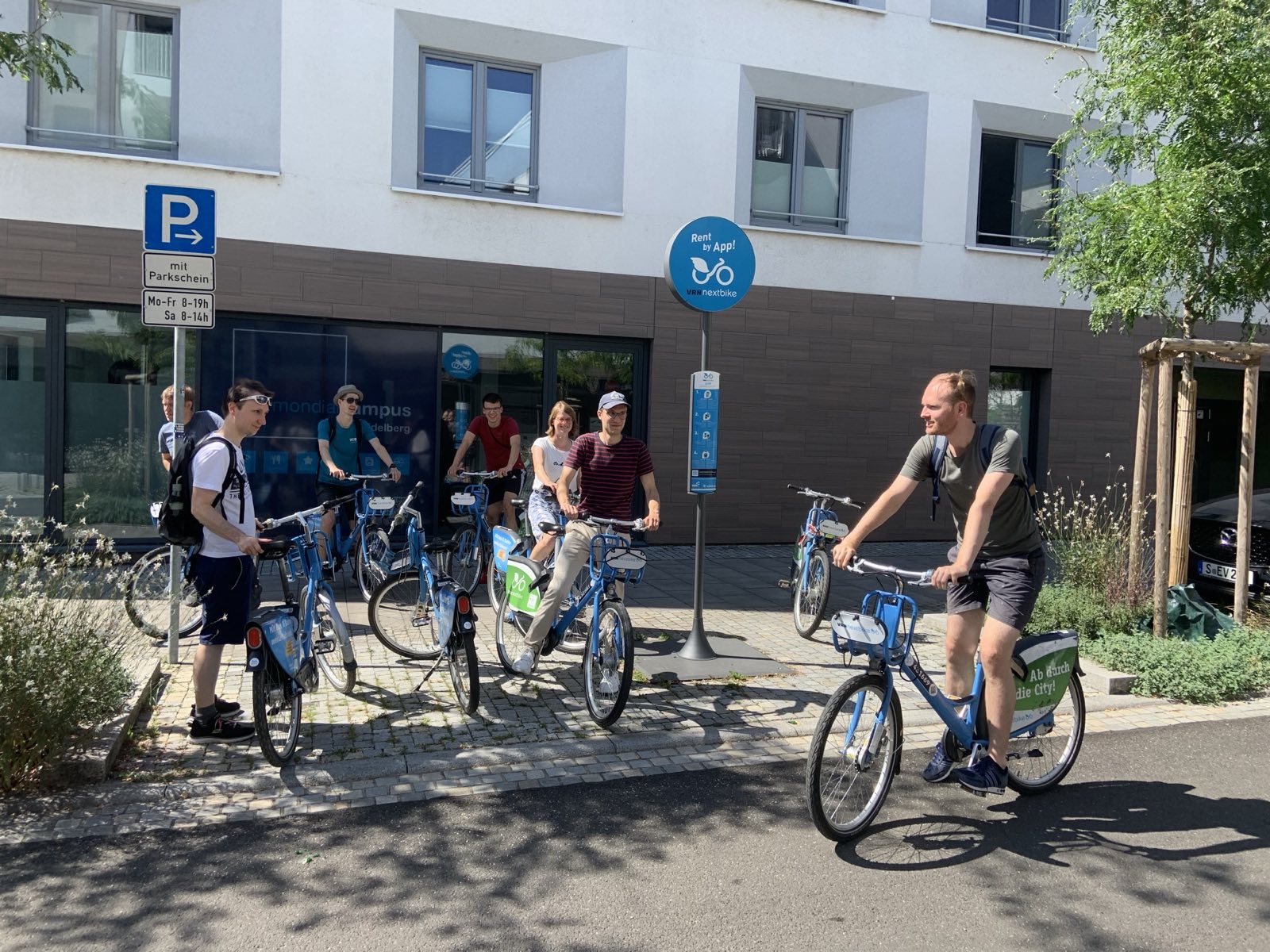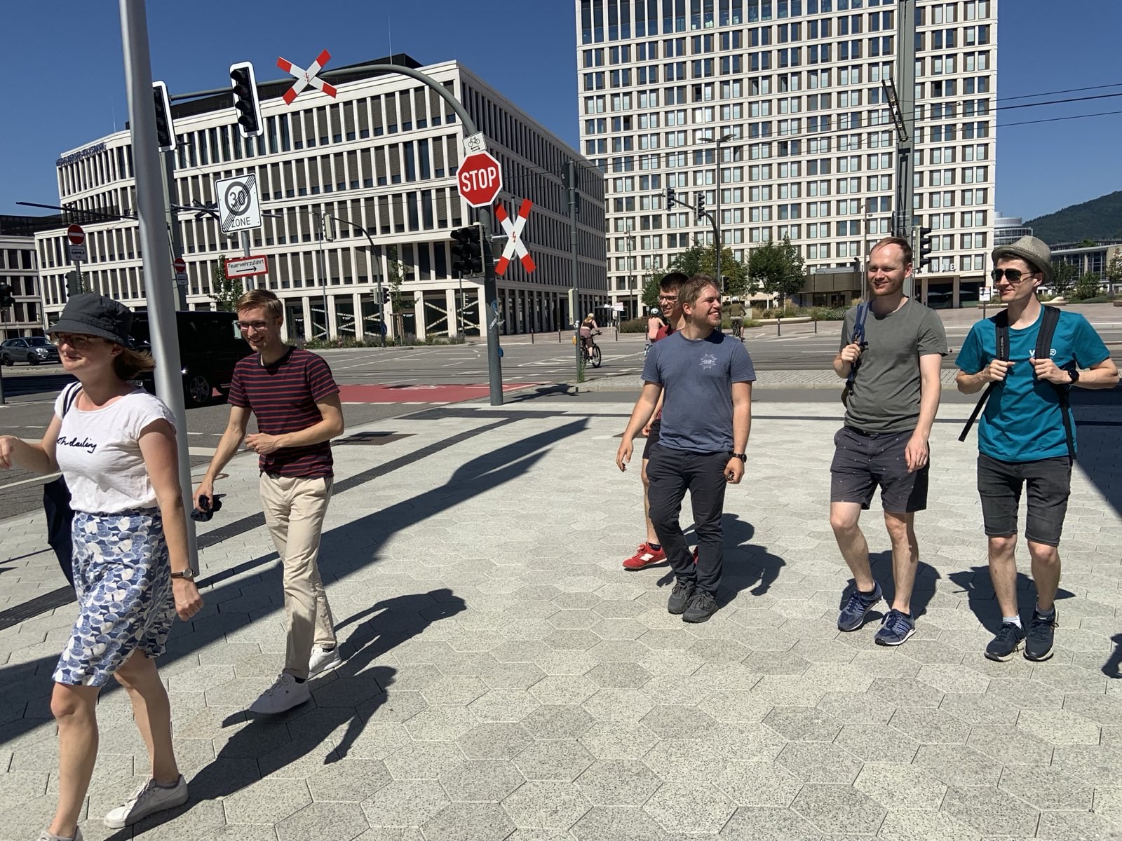 Durch die mittlerweile bahnüblichen Verspätungen begann die Stadterkundung erst um 14 Uhr am Heidelberger Umweltzentrum „ZUM“. Vorher konnten sich die Teilnehmenden in einer Vorstellungsrunde kennenlernen, während die letzten Teilnehmer noch antrudelten. Von dort führte die Route zunächst zum Fahrradparkhaus, weiter in die preisgekrönte Bahnstadt und entlang der Kurfürstenanlage bis zum umgestalteten Patrick-Henry-Village. Unterwegs besichtigte die Gruppe das Parklet in Neuenheim und legte einen Halt in einem Unverpacktladen ein. Den Abschluss bildete eine kleine Stadtführung durch die Heidelberger Altstadt mit Blick von der Alten Brücke. Gegen 18 Uhr endete das offizielle Programm, bevor der Tag bei einem geselligen Beisammensein im Umweltzentrum ausklang.