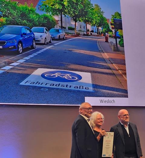 Die Arbeitsgemeinschaft fuß- und radverkehrsfreundlicher Kommunen (AGFK Baden-Württemberg) zeichnet Gemeinden und Kreise aus, die sich für die Förderung von Fuß- und Radverkehr einsetzen. In diesem Jahr übernahmen Verkehrsminister Winfried Hermann und der AGFK-Vorsitzende Günter Riemer die Ehrungen im Rahmen des baden-württembergischen Radverkehrskongresses in Heidelberg. Aus dem Rhein-Neckar-Raum waren in diesem Jahr dabei: