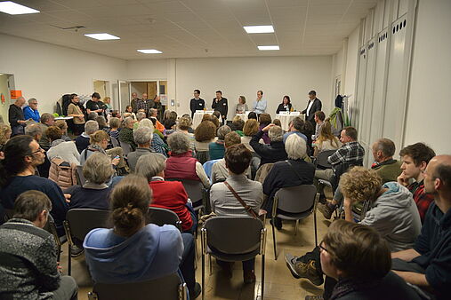 Walzers Frage nach dem von den Kandidaten für die Anreise gewählten Verkehrsmittel brachte zu Tage, dass eine überlegte und verantwortungsvolle Verkehrsmittelwahl zumindest auf dem Podium eine Selbstverständlichkeit ist: Salomon und Kröger waren zu Fuß gekommen, Stein mit dem Fahrrad, Behringer wählte aus Zeitgründen für seine Anfahrt aus Kappel das Auto ebenso wie Horn, der mit mehreren Mitfahrern an Bord direkt von einer Vorveranstaltung gekommen war.
