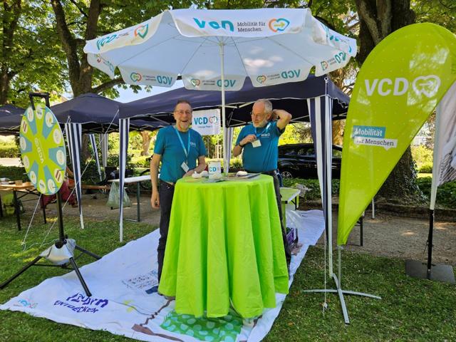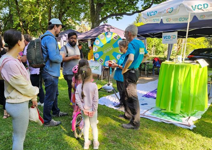 Wie schon im Vorjahr lockte unser Glücksrad viel Publikum an. Und die “gewonnenen” Fragen zur Mobilität führten zu zahlreichen lebhaften Diskussionen rund um die Verkehrswende.